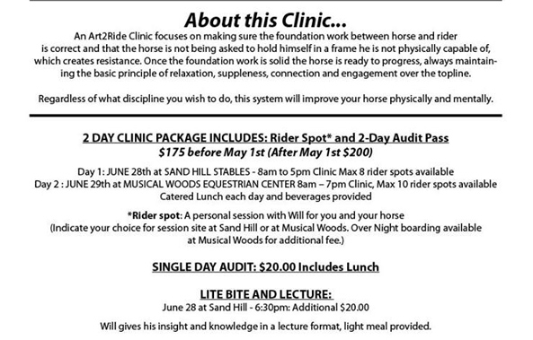 JS Horsemanship is sponsoring a two day clinic on June 28 and June 29, 2014.
