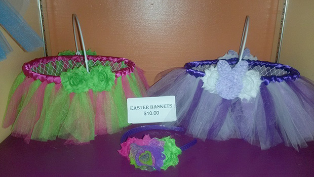 Adorable Easter Baskets by Bushel of Bows (pictured above) are now available in the gift shop at the Cafe for $10.00 each. Katherine can also fill custom orders and have them ready in two days time.