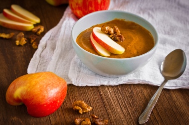 Garnish the soup top with cinnamon, pecans, walnuts, and thin slices of apples, delish!
