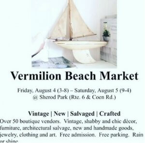 Be a part of the first annual Vermilion Beach Market at Sherod Park five minutes west of historic Harbourtown on Friday, August 4th from 3:00 p.m. - 8:00 p.m. and Saturday, August 5th from 9:00 a.m. - 4:00 p.m. Shop on the beach with Fine Art Findings, Peninsula, Ohio and from over 60 vendors for vintage, shabby ... Read more